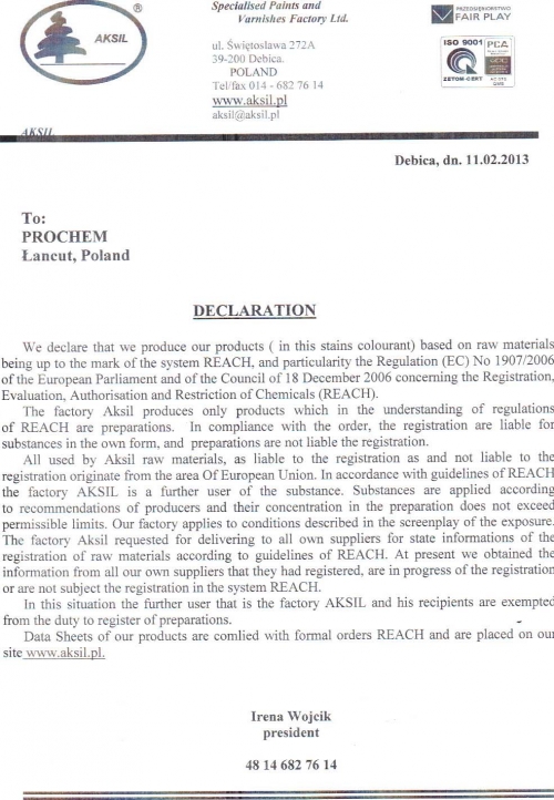 Декларации, сертификати, информационни листове